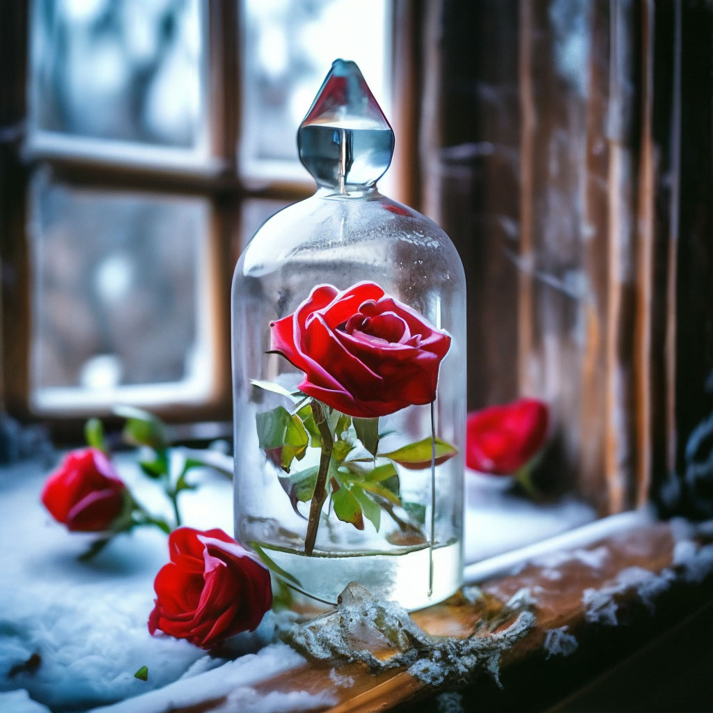 | И только аромат цветущих роз - Летучий пленник, запертый в стекле, - Напоминает в стужу и мороз О том, что лето было на земле. |